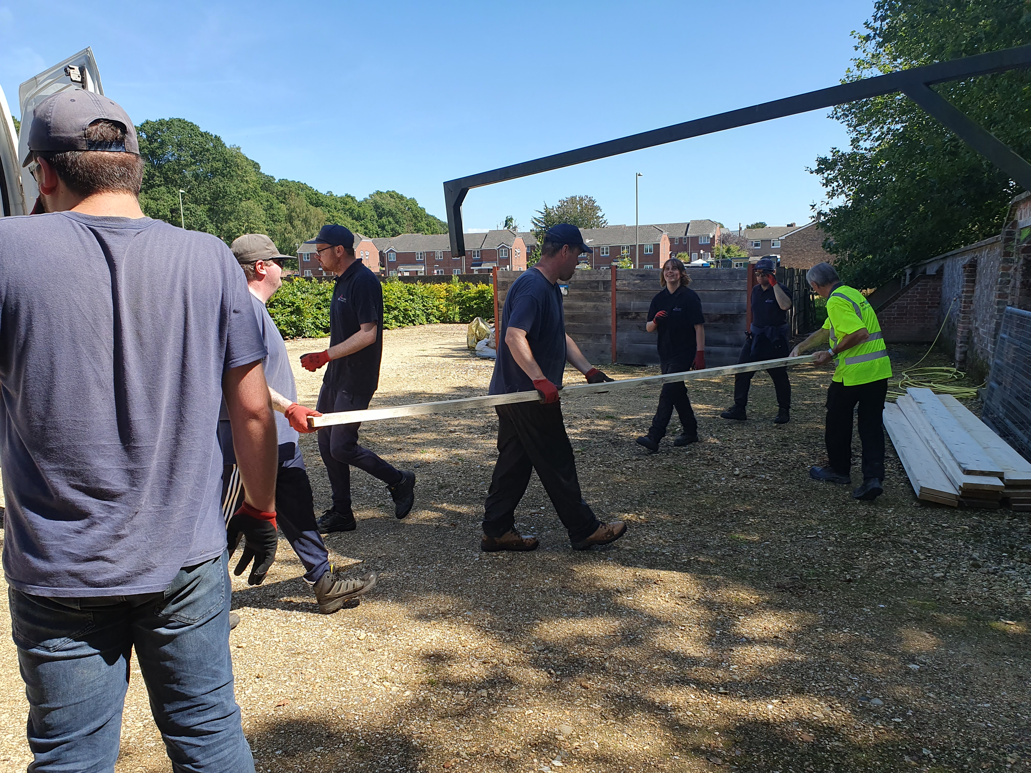 The Right to Work had plans to expand the outdoor shop area in Storey Gardens to make it look more attractive but needed materials to set this up. They wanted to create seven raised beds with differing colour schemes and needed scaffolding boards to build them. We supplied them with all the boards and 2 x 2 wood for the corners. The wood was delivered, and a very excited group of volunteers helped to unload the van.