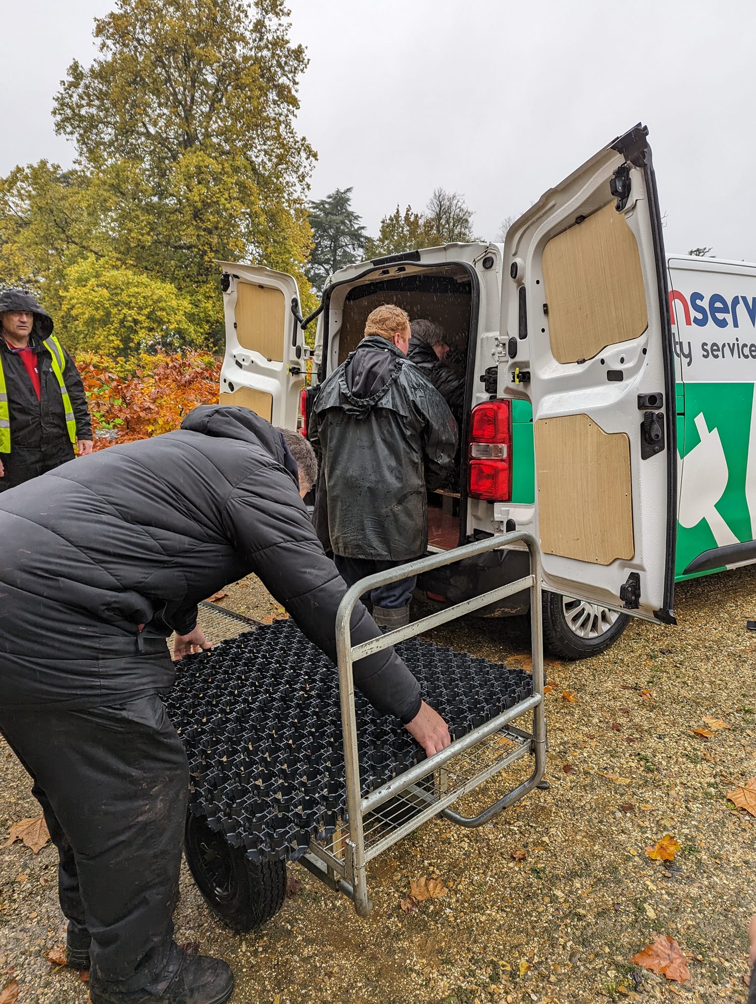As you can imagine, the walkways around the gardens can become extremely boggy and slippery during the wet winter months, and this particularly affects the sales area. With the arrival of Storm Ciaran in early November 2023 The Right To Work contacted us to see if we could help them to purchase some Bodpave matting to cover this area which had already turned into a mud bath.